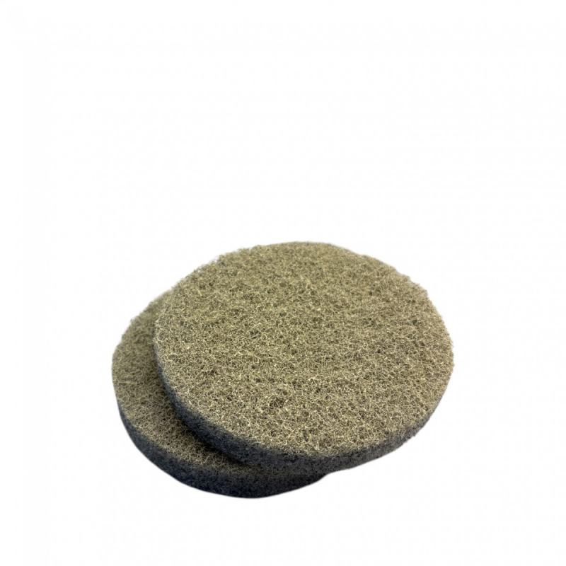 AKEPAD 8000 (CREMA) Almohadilla áspera para restaurar o rectificar previamente superficies muy desgastadas con rasguños profundos. Tiempo de vida aproximado 1000 - 1500 m2. Sistema AKE-Pad compuesto por diferentes almohadillas = almohadillas de alto rendimiento para lijar, limpiar y pulir, así como para el mantenimiento de superficies de piedra natural, terrazo y hormigón. Caracteristicas: Almohadillas hechas de fibras sintéticas flexibles con un abrasivo acabado de cristal de alta tecnología. Alto rendimiento / alta durabilidad. Almohadillas robustas de 20mm de espesor. Igual nivel de brillo en todas las superficies. La estructura de tejido abierto de las almohadillas ilumina el proceso de limpieza. Tamaño: 6 '' / 150 mm para amoladoras angulares 17 '' / 430 mm para lijadoras de piso * Accesorios / Máquinas: Las almohadillas AKE se pueden procesar en húmedo o en seco con las siguientes máquinas - Máquina de un solo disco más pesada que 35 kg. - máquina giratoria - Máquinas de succión Scrub - Pulidora de ultra alta velocidad (UHS) más pesada que 50 kg - Lijadora / pulidora de 3 cabezales - Lijadora de ángulo (para 6 '' pads) Recomendado por AKEMI: Velocidades ** entre 200 y 2000 RPMM y peso *** entre 20 y 80 kg. ** AKE-Pad 400 : RPM de 150-200, AKE-Pad 800 : RPM de 200-400 , AKE-Pad 1500, 3000 y 8000 : RPM 200-2000 *** para 17 '' pads / máquinas