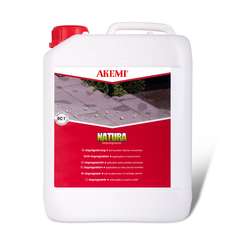 IMPREGNACIÓN NATURA (A BASE ACUOSA) Impregnación la cual sirve para el tratamiento repelente contra agua y suciedad de todas las piedras naturales y artificiales absorbentes, coto, terrazo y placas de cerámica sin vidriar. El producto es especialmente apto para superficies como humedad residual, especialmente en los exteriores y en la aplicación en líneas de pulido de la industria. El tono de la piedra no se cambia en regla general.
